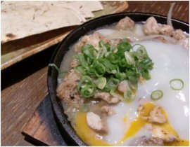 地鶏、塩ダレ、チーズ焼(温卵乗)米粉・トルティ |