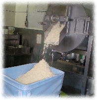 3.すりつぶした液状の大豆を煮釜へ入れます。