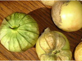 | 日本ではめずらしいですが、メキシコの市場では普通に売られている青トマトです。 かなり酸味があって、サラダにかけたり、ディップとして使ったりします。 アイデア次第で面白い食材です |